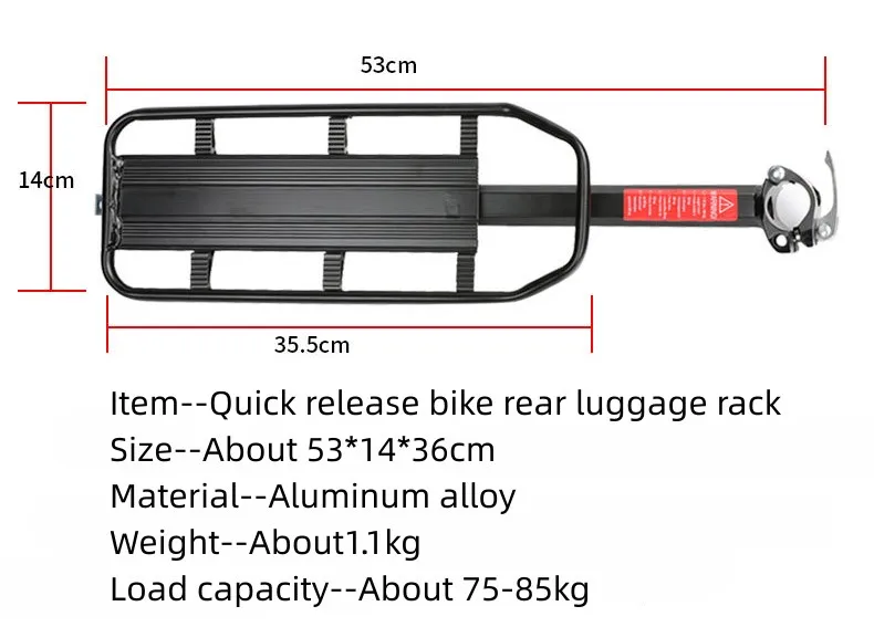 Aluminum Alloy Heavy Duty Shelf Bike Rear Racks Luggage Cargo Carrier Rack Bicycle Stand Support with Tools Bicycle Accessories